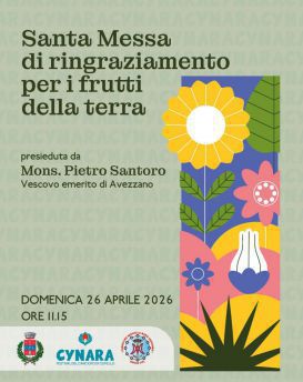 Domenica 26 aprile alle ore 11:15, presso la Chiesa Parrocchiale della Natività di Maria Santissima di Cupello, sarà celebrata la Santa Messa di ringraziamento per i frutti della terra. La celebrazione sarà presieduta da Pietro Santoro, Vescovo emerito di Avezzano, insieme al parroco di Cupello, Don Nicola Florio, e con la partecipazione delle istituzioni del territorio.