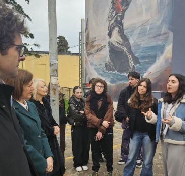 Lunedì, 24 Febbraio 2025 VastoGli studenti e le studentesse del Pantini-Pudente presentano il murales di Vesod BreroOpera che parla di impegno civile e memoria collettivaOggi, 24 febbraio 2025, il sindaco di Vasto Francesco Menna, l’assessora alle Politiche Giovanili e all’Istruzione, Paola Cianci, e la dirigente scolastica Anna Orsatti hanno incontrato alcuni delle studentesse e degli studenti che hanno collaborato alla realizzazione del murales sulle pareti del Liceo delle Scienze Umane Pantini-Pudente in Via Madonna dell’Asilo, opera dell’artista torinese Vesod Brero, con il supporto di Nicola Di Totto. Il murales “Agenda Rossa” ha come finalità la promozione della cultura della legalità tra le nuove generazioni è stato completato prima della pausa natalizia e rientra nell’iniziativa Talking Walls 6.0, promossa dalla Provincia di Chieti in collaborazione con il Comune di Vasto e l’assessorato alle Politiche Giovanili e all’Istruzione. Questo momento di incontro è stato voluto per spiegare il lavoro svolto e condividere l’esperienza con l’artista, sottolineando il valore educativo e sociale di un’opera che parla di impegno civile e memoria collettiva. «Ci tenevamo tantissimo ad incontrare i ragazzi e le ragazze che con grande impegno hanno partecipato a questo progetto per ascoltare le loro impressioni sull’esperienza che li ha visti lavorare a stretto contatto con un artista di fama nazionale e internazionale», hanno dichiarato il sindaco Francesco Menna e l’assessora Paola Cianci. «Attraverso l’arte– continuano sindaco e assessora – i giovani hanno avuto l’opportunità di riflettere su temi come la legalità e il senso di appartenenza alla comunità. Questo progetto è la dimostrazione di come la creatività possa diventare uno strumento di partecipazione attiva e di cittadinanza consapevole. Grazie alla preside Anna Orsatti, all’artista Nicola Di Totto e a tutti coloro che con impegno ci hanno permesso di portare a termine questa bella iniziativa». |