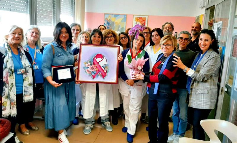 Sabato, 1 Novembre 2025 Vastese“Rifiorire”, opera d’arte donata alla breast unit dell’Ospedale di OrtonaIl dono di Simona Milella: "dopo ogni tempesta, più forti e colorate di prima"Ottobre, il mese tradizionalmente dedicato alla prevenzione e alla diagnosi precoce del tumore al seno, si conclude con un’iniziativa che unisce arte e cura. L’artista Simona Milella, originaria di Spoltore, ha donato una sua opera intitolata “Rifiorire”. Il quadro è stato accolto dalla breast unit dell’Ospedale di Ortona, centro certificato “breast center Eusoma” della Asl Lanciano Vasto Chieti per la cura del carcinoma della mammella, e dall’Associazione Gaia, che offre sostegno alle donne operate al seno. L’opera “Rifiorire” va ad arricchire la sala d’attesa del reparto. Si tratta della seconda donazione dell’artista, che già nel 2018 aveva donato il quadro “Rinascita”. Il nuovo dipinto è accompagnato da una dedica rivolta alle pazienti della senologia oncologica: «Con l’augurio di ‘rifiorire’, dopo ogni tempesta, più forti e colorate di prima». La breast unit ha voluto ringraziare l’artista per il dono ricevuto con una targa: «A Simona Milella. L’arte rende il mondo un luogo di bellezza e di pace. Grazie per aver voluto condividere il tuo mondo con noi». |