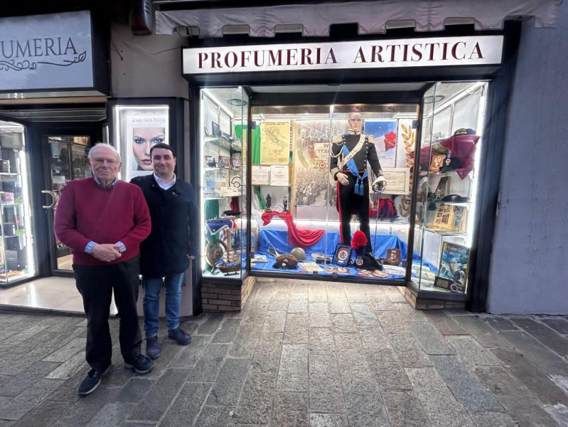 Mercoledì, 5 Novembre 2025 VastoUniformi storiche, pubblicazioni e immagini del passato nella vetrina Florio per il 4 NovembrePer ricordare il significato della Giornata dell’Unità Nazionale e delle Forze ArmateIn occasione del 4 Novembre, Giornata dell'Unità Nazionale e delle Forze Armate, le Associazioni Combattentistiche e d’Arma di Vasto (Associazione Nazionale Marinai d’Italia, l’Associazione Arma Aeronautica, l’Associazione Nazionale Carabinieri, l’Associazione Nazionale Finanzieri d’Italia, Associazione Nazionale Polizia di Stato e Associazione Nazionale Bersaglieri) hanno curato l’allestimento della vetrina della profumeria "Florio" in Corso Garibaldi, impreziosendola con uniformi storiche, pubblicazioni e immagini del passato. |