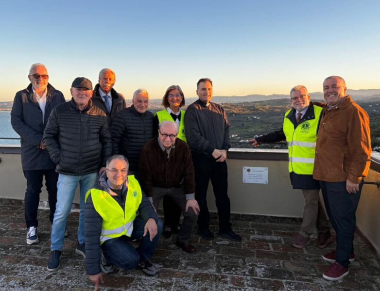 Giovedì, 6 Novembre 2025 VastoUna targa commemorativa del Lions Club Vasto Host sulla torre campanaria della Chiesa di Santa Maria MaggioreIl Club ha elargito un contributo per la sistemazione di un parapetto di sicurezza sulla parte più alta del campanileIl Presidente del Lions Club Vasto Host, Michele Lalla e una nutrita rappresentanza di Soci, sono saliti sulla torre campanaria della Chiesa di Santa Maria Maggiore e alla presenza Don Domenico Spagnoli, parroco della Chiesa, hanno apposto una targa commemorativa, a ricordo del finanziamento che il Club ha elargito per la sistemazione di un parapetto di sicurezza sulla parte più alta del campanile. Il parapetto, collocato per motivi di sicurezza, permette la visita nella zona panoramica del monumento, senza alcun pericolo per i visitatori e i turisti che, una volta saliti in cima, possono godere di un panorama unico su tutta la città di Vasto e sul golfo, con una visuale a 360°, che spazia dalla montagna, Conero, Gran Sasso, monti della Laga, Maiella, al mare, faro di Punta Penna, Gargano e isole Tremiti. L’opera è stata predisposta senza impatto visivo dal basso in modo da lasciare la visibilità del campanile in tutta la sua bellezza architettonica. Parole di ringraziamento sono state formulate da Don Domenico nei riguardi del Club per questa indispensabile iniziativa e per tutte le altre attenzioni di service che da anni il Lions Club Vasto Host non manca di avere per Vasto e il circondario. |