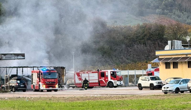 Mercoledì, 19 Novembre 2025 VasteseUn camion prende fuoco nell'area di servizio "Portobello"Dura lotta dei Vigili del Fuoco con le fiamme che minacciavno di espandersiPomeriggio molto movimentato e carico di tensione all'interno dell'area di Servizio Portobello ubicata lungo la statale adriatica 16, a poco meno di un chilometro di distanza dal Casello autostradale di Vasto Nord. Verso le ore 15,00 un camion che era entrato nell'area di servizio ha preso improvvisamente fuoco nei pressi del serbatoio contenente Gpl. Immediatamente è scattato l'allarme e mentre sul posto si tentava di bloccare le fiamme con alcuni estintori, veniva richiesto l'intervento dei Vigili del Fuoco che da Vasto e da Gissi raggiungevano l'area di servizio con alcuni mezzi. In loro supporto anche gli uomini della Protezione Civile di Casalbordino. Non è stato facile domare le fiamme che potevano raggiungere le vicine pompe di benzina. Un lavoro arduo portato avanti con tanta professionalità dai Vigili del Fuoco i quali, alla fine, sono riusciti a domare le fiamme. Il camion è andato completamente distrutto ma, per fortuna, l'impianto di distribuzione di carburanti, nonostante danni rilevanti, è stato salvato. La statale adriatica 16 è stata chiusa al traffico per qualche ora, I mezzi sono stati deviati verso miracoli di Casalbordino percorrendo le strade provinciali. La Statale 16 è stata riaperta al traffico solo nel taro pomeriggio. Ora sarà necessario verificare l'intera area di servizio per scongiurare pericoli per quanti vi operano.