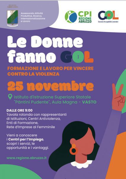 Lunedì, 24 Novembre 2025 VastoParte da Vasto l’iniziativa “Le donne fanno gol”Tour regionale che mette al centro formazione e indipendenza economicaIn occasione della ‘Giornata internazionale per l’eliminazione della violenza contro le donne’, la Regione Abruzzo organizza l’iniziativa “Le Donne fanno GOL”, un ciclo di incontri con gli studenti abruzzesi che unisce live podcast, testimonianze, formazione e orientamento per riflettere sul ruolo decisivo che lavoro, competenze e autonomia economica svolgono nella prevenzione e nel superamento della violenza. Si parte il 25 novembre da Vasto, dal Liceo Artistico “Pàntini Pudente”, che segna l’avvio di un tour regionale che, nelle settimane successive, toccherà le scuole di Lanciano, Ortona, Avezzano e Giulianova, con l’obiettivo di diffondere consapevolezza e promuovere l’accesso ai percorsi del Programma GOL sull’intero territorio abruzzese. “La realtà di tutti i giorni - sottolinea l'Assessore al Lavoro e alle Attività produttive, Tiziana Magnacca – ci consegna un quadro in cui le donne continuato a trovare ostacoli nella ricerca del lavoro e di un reddito stabile. Noi riteniamo che solo una decisa azione in favore della formazione possa mettere nella disponibilità delle donne quegli strumenti necessari per entrare con maggiore facilità nel mercato del lavoro. Le situazioni di fragilità, com’è quella della donna vittima di una violenza, acuiscono il divario ed è per questo che il nostro compito è sensibilizzare, informare e far capire ai più giovani che ci sono opportunità reali di crescita e miglioramento delle condizioni sociali.” L’appuntamento inaugurale di martedì 25 novembre al liceo artistico di Vasto vedrà la partecipazione di rappresentanti istituzionali, degli operatori dei Centri per l’impiego, delle forze dell’ordine, dei Centri antiviolenza e professioniste del territorio. La conduzione sarà affidata alla giornalista Barbara Scorrano, che guiderà il live podcast insieme alle ospiti e ai testimoni dell’iniziativa. La scelta di partire dal liceo artistico “Pantini-Pudente” non è casuale: l’80% della sua popolazione scolastica sono studentesse, un contesto ideale per avviare un percorso dedicato all’autonomia femminile e alla cultura delle pari opportunità. |