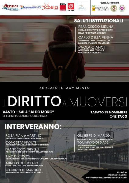 Lunedì, 24 Novembre 2025 Vasto"Il diritto a muoversi": a Vasto convegno sulle criticità dei trasporti pubblici regionaliL’iniziativa è organizzata dal comitato Abruzzo in Movimento con il patrocinio del ComuneIl comitato Abruzzo in Movimento è lieto di annunciare l'organizzazione del convegno di rilevanza civica "Il diritto a muoversi", un'assise pubblica dedicata all'analisi sistematica e all'identificazione di soluzioni concrete per le gravi disfunzioni che affliggono il servizio di trasporto pubblico nella Regione Abruzzo, con particolare attenzione all'area meridionale.L'evento, realizzato con il patrocinio del Comune di Vasto e della Provincia di Chieti, si terrà sabato 29 novembre 2025, con inizio alle ore 17:00, presso la sala convegni "Aldo Moro" (complesso degli ex palazzi scolastici, Corso Italia, Vasto). Il convegno vedrà la partecipazione di una platea autorevole di rappresentanti istituzionali, associazioni a tutela dei consumatori, sindacati ed esperti tecnici. Tra i contributi previsti si registrano i saluti istituzionali del sindaco di Vasto e presidente della Provincia di Chieti, Francesco Menna, affiancato dagli assessori Carlo Della Penna (Politiche di Mobilità) e Paola Cianci (Politiche Giovanili e Istruzione). Il Comitato Abruzzo in Movimento sarà rappresentato dalla sua presidente, Rosa Pia de Martino. Il dibattito vedrà il coinvolgimento delle associazioni a tutela dei consumatori, con Concetta Nasuti (presidente delegazione Codici di Chieti), Francesco Trivelli e Tino Di Cicco (Federconsumatori ApsAbruzzo). Per la componente sindacale saranno presenti Maurizio Di Martino (segretario confederale Cgil Chieti) e Aurelio Di Eugenio (segretario Filt Cgil Abruzzo Molise). La prospettiva tecnica sarà portata da Tommaso Di Biase (referente progetto "La Rete del Ferro") e Giuseppe Di Marco (presidente Dmc Costa dei Trabocchi). La sessione sarà coordinata da Sabrina Stanzione (vicepresidente Abruzzo in Movimento). L'iniziativa nasce dalla ferma convinzione che il "diritto a muoversi" sia un'esigenza fondamentale e non negoziabile per la collettività, essenziale per pendolari, studenti e tutti i cittadini. Il comitato Abruzzo in Movimento ha evidenziato diverse macro-categorie di criticità che saranno al centro del dibattito, tra cui: costi e qualità del servizio, focalizzandosi sul sensibile e ingiustificato aumento tariffario a fronte di un servizio percepito come inadeguato; deficit infrastrutturali e accessibilità negata, evidenziando il grave degrado strutturale delle stazioni e l'assenza totale di ausili per la deambulazione (rampe, ascensori), che negano l'accesso alle persone con disabilità o mobilità ridotta, contravvenendo ai principi di inclusività; e infine la sicurezza e presidio istituzionale, sollevando le preoccupazioni per la sicurezza pubblica nelle pertinenze stazionali e la conseguente richiesta di un rafforzamento urgente della Polizia Ferroviaria (PolFer) per contrastare la microcriminalità e il vandalismo. «Garantire un sistema di trasporti efficiente, accessibile e sicuro è – per il sindaco Francesco Menna - una responsabilità che le istituzioni devono assumere con determinazione. Il tema al centro di questo convegno riguarda la qualità della vita dei nostri cittadini, in particolare di pendolari, studenti e delle persone più fragili. Accogliamo con grande interesse il lavoro del comitato Abruzzo in Movimento e riteniamo fondamentale un confronto costruttivo per individuare soluzioni». Rosa Pia de Martino, presidente del comitato Abruzzo in Movimento, ha dichiarato in vista dell'evento: «Non possiamo più accettare che un servizio essenziale come il trasporto pubblico presenti sistematicamente carenze, specialmente in termini di costi, qualità e accessibilità. Il nostro convegno non sarà solo un momento di denuncia, ma un'assise di lavoro per trovare strategie operative concrete da presentare agli enti competenti. È tempo che le parole si trasformino in fatti per garantire davvero a tutti i cittadini il “diritto a muoversi”». |