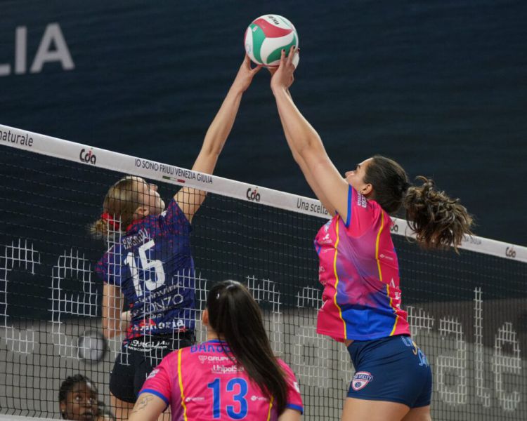 Lunedì, 24 Novembre 2025 SportBattuta d’arresto per la Tenaglia Abruzzo Altino VolleyLa corsa si ferma in casa della capolista Talmassonsnisce con una sconfitta il girone d’andata della Tenaglia Abruzzo Altino Volley, che arresta la propria corsa sul campo della capolista CDA Volley Talmassons. La sconfitta tuttavia non incide sul quarto posto, piazzamento utile per l’accesso alla coppa Italia conquistato dalle chietine con una giornata d’anticipo. Top scorer dell’incontro l’opposto di casa Giorgia Frosini, autrice di 21 punti col 67% di positività in attacco e due aces. In doppia cifra anche Gannar e Bakodimou con 11 punti a testa. Per le abruzzesi, Adji Ndoye chiude con nove punti personali (33%), bene anche Julia Murmann con otto (47%). Sei punti per Viktoryia Siakretava e cinque per Dalila Marchesini. Ampie rotazioni per coach Ingratta, che nel tentativo di insidiare le sicurezze friulane da spazio anche a Passaro in regia, a Guzin, Monaco e Polesello al centro e alla friulana Trampus in attacco (4 punti). Importante anche il ritorno in campo di Melissa Tesi in seconda linea, in alternanza con Alessia Fini. Nel prossimo turno, la Tenaglia Abruzzo Altino Volley giocherà in anticipo sabato 29 novembre alle 18:30, in casa contro la Futura Volley Giovani. Capitan Molinaro inaugura l’incontro, Frosini mette fuori l’1-2. Bakodimou e Murmann alternano un errore a un punto (3-3), poi la canadese risponde a Frosini e pareggia sul 5-5. Gannar e Bakodimou infilano il primo break friulano sul 9-6 del timeout Ingratta. Due attacchi di Ndoye (5 nel set, 45%) accorciano il gap, il muro di Bagnoli fissa il 9-9. Molinaro e Frosini ridanno linfa alle padrone di casa (13-10), la stessa centrale ferma a muro la pipe di Sassolini ed è sempre +3. Sul massimo vantaggio locale (15-11 con l’ace di Bakodimou), coach Ingratta fa il punto con le sue. Giorgia Frosini sale in cattedra con tre punti di fila e Talmassons allunga sul 18-12. Coach Ingratta inserisce Trampus e Passaro ma Frosini insiste anche col servizio per il 21-13. Sassolini sfrutta a proprio favore il muro di Gannar, la solita Frosini (72% in attacco) passa in parallela col nono punto personale, 22-15. Sassolini va lunga da posto 4 e consegna otto palle set alle friulane. È Sofia Cusma a chiudere il primo set con il mani fuori del 25-17. Marchesini e Gannar riprendono il gioco dal centro. Siakretava in parallela e Sassolini dai nove metri siglano l’1-3. Frosini va in doppia cifra personale poi Molinaro porta avanti le sue sul 5-4. Siakretava accorcia sul 7-6 con un ace, Frosini si prende il cambio palla in parallela. Sull’attacco vincente di Gannar (11-7), coach Ingratta mette le mani a T. Gannar rimedia anche all’errore di misura di Bakodimou ed è 12-8. Talmassons mette in difficoltà la Tenaglia col servizio, sul 14-9 coach Ingratta esaurisce i timeout del set. Scola alza il muro su Ndoye, poi si rivede Viola Passaro, a dare il cambio a Anita Bagnoli. Gannar regala il decimo punto a Altino sbagliando il servizio, Sassolini firma l’ace del 17-11. Frosini chiude uno scambio indeciso, Trampus rileva Murmann in posto 4. Francesca Scola firma il servizio vincente del 20-11, Siakretava mette in rete la battuta del 22-13. Monaco prende il posto di Guzin al centro, Trampus risponde a Frosini poi Rossetto in diagonale procura dieci set points alla CDA. Giorgia Frosini piazza un arcobaleno all’incrocio delle righe e chiude il set sul 25-14. A inizio terzo set, coach Ingratta opta per Passaro in regia, Monaco al centro e il ritorno di Alessia Fini come libero, dopo la presenza fissa nel set precedente della rientrante Melissa Tesi. Julia Murmann con due punti risponde a Molinaro e Rossetto, 4-4. Monaco va a segno in parallela, Frosini in pallonetto impatta sul 6-6. Bakodimou rimedia in palleggio all’errore di Gannar col servizio, 8-8. Ndoye e Murmann caricano la metà campo abruzzese, l’ace di Marchesini vale il 9-11. Ndoye prima passa in diagonale poi subisce il muro di Gannar, 12-12. Frosini colpisce con la battuta, Rossetto spinge Talmassons col pallonetto del 15-12. Monaco lascia il campo in favore di Polesello e Murmann accorcia sul -2. Momento di riflessione per la Tenaglia sul 17-13, Bakodimou con due attacchi spinge sul +5 le compagne. Sassolini e la rientrante Trampus non trovano il campo in attacco, Talmassons scappa sul 20-13. Ndoye con forza firma il punto del 21-16, poi Trampus va a segno tre volte, in diagonale, in parallela e col mani out per il 22-19. Murmann accorcia ulteriormente sul -2, poi Ndoye va leggermente lunga in diagonale offrendo tre match points alla CDA. La stessa Adji Ndoye esagera da posto 2 determinando il 25-21 del 3-0 finale. LA VOCE DEL POST PARTITA Dalila Marchesini, centrale Tenaglia Abruzzo Altino Volley. “Purtroppo stasera non siamo riuscite ad esprimerci come avremmo voluto, pur non avendo alcuna pressione addosso, l’atteggiamento in campo non è stato quello giusto. Ora ci concentreremo sulla settimana di allenamenti e sulla partita di sabato contro Futura”. TABELLINO CDA VOLLEY TALMASSONS FVG – TENAGLIA ABRUZZO ALTINO VOLLEY 3-0 (25-17 25-14 25-21) Per tutte le informazioni sull’incontro (tabellino, fotografie, ecc.), è disponibile il match center della partita al seguente link: https://www.legavolleyfemminile.it/match-center/747747/ . Le foto presenti nel match center sono di Daniele Silosich per LVF, si prega di citare l’autore delle fotografie in caso di utilizzo delle stesse. SERIE A2 TIGOTÀ GIRONE B – 9^ GIORNATA CLASSIFICA DOPO NOVE GIORNATE Foto di Daniele Silosich.