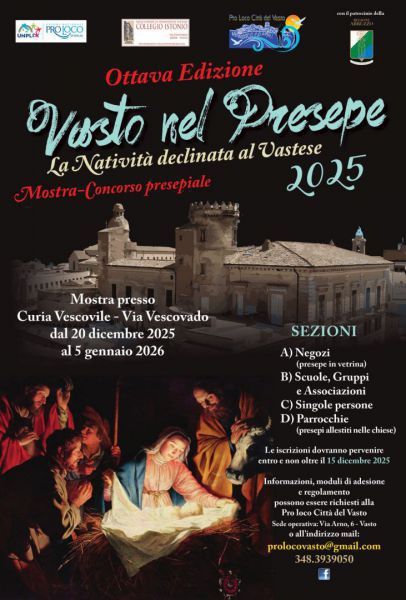 Martedì, 25 Novembre 2025 VastoOttava Edizione di “Vasto nel Presepe – La Natività declinata al Vastese”La mostra dal 20 dicembre al 5 gennaioLa Pro Loco “Città del Vasto” presenta l’ottava edizione di “Vasto nel Presepe – La Natività declinata al Vastese”, iniziativa ormai riconosciuta come appuntamento tradizionale del periodo natalizio e divenuta, nel corso degli anni, un punto di riferimento per quanti amano e valorizzano l’arte presepiale. La manifestazione, realizzata con la collaborazione del “Collegio Istonio” e con il patrocinio della Regione Abruzzo, si propone di unire memoria, creatività e identità locale, attraverso opere capaci di raccontare la Natività in un’interpretazione tipicamente vastese. Grazie alla paziente dedizione degli organizzatori e al crescente entusiasmo dei partecipanti, la mostra–concorso è oggi un evento consolidato e particolarmente apprezzato da cittadini e visitatori, contribuendo ogni anno ad accrescere l’interesse verso la cultura del presepe e la valorizzazione delle tradizioni locali. La mostra sarà allestita presso la Curia Vescovile, in Via Vescovado, dal 20 dicembre 2025 al 5 gennaio 2026. Per favorire la più ampia partecipazione, il concorso è aperto gratuitamente a tutti, senza limiti di età, ed è suddiviso in quattro sezioni: A) Negozi (presepi in vetrina) B) Scuole, gruppi e associazioni C) Singole persone D) Parrocchie (presepi allestiti nelle chiese) Sono previste due diverse valutazioni: – una Giuria Popolare, attraverso il voto dei visitatori durante il periodo espositivo; – una Giuria Tecnica composta da esperti. Al termine della mostra verranno assegnati premi dedicati ai primi tre classificati delle sezioni B e C scelti dalla Giuria Popolare, oltre a un premio esclusivo della Giuria Tecnica riservato ai soli primi classificati delle sezioni B e C. A tutti i concorrenti sarà rilasciato un attestato di partecipazione. Le iscrizioni dovranno pervenire entro e non oltre il 15 dicembre 2025. Informazioni, moduli e regolamento sono disponibili presso la sede operativa della Pro Loco “Città del Vasto”, in Via Arno 6 – Vasto, oppure scrivendo all’indirizzo emailprolocovasto@gmail.com o contattando il numero 348 3939050. La Pro Loco “Città del Vasto” invita la cittadinanza a partecipare e a contribuire alla buona riuscita dell’iniziativa, riaffermando insieme il valore culturale e identitario della tradizione presepiale, quale simbolo di comunità, creatività e fede. “Il presepe appartiene alla nostra storia e alle nostre famiglie. Con ‘Vasto nel Presepe’ vogliamo continuare a custodire e trasmettere questa tradizione, valorizzando al contempo la creatività e il talento del nostro territorio. Ogni opera rappresenta un atto d’amore verso la comunità e le sue radici. Una manifestazione che è cresciuta negli anni, diventando un importante appuntamento cittadino, capace di unire generazioni e sensibilità diverse attorno al significato autentico del Natale.” |