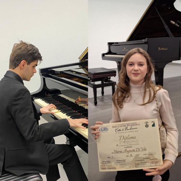 Lunedì, 1 Dicembre 2025 VastoNuovi successi per gli allievi della Scuola Civica Musicale di VastoOttimi piazzamenti al 21° Concorso Nazionale di BucchianicoAl 21° Concorso Nazionale di Esecuzione Pianista “Città di Bucchianico” Emanuele Santoro e Maria Augusta Di Vito, allievi della Scuola Civica Musicale Città del Vasto, nella classe di pianoforte del M° Michele Taraborrelli, si sono distinti ottenendo il Terzo Premio; il primo nella categoria F (19-23 anni) e la seconda nella categoria B (11-13 anni). Il programma con cui hanno ottenuto questo riconoscimento è stato il seguente: Bach - Preludio e Fuga in Do min., Chopin - Notturno in Do# min., Prokofiev - Preludio “Arpa”, Beethoven - Sonata n.5 (I mov.) per Emanuele Santoro e A. Casella - Bolero, R. Bellafronte - Caleidoscopio “Il Risveglio” per Maria Augusta Di Vito. Felicitazioni da parte della Presidente e del C.d.A. del Polo Culturale Città del Vasto, del Direttore artistico e dell’assessore alla Cultura del Comune di Vasto. |