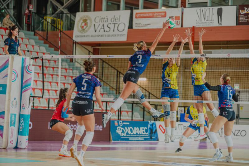 Domenica, 7 Dicembre 2025 SportLa Nuvolí Altafratte Padova espugna il PalaBCC e mette in crisi ls Tenaglia AltinoPer la formazione abruzzese terza sconfitta consecutivaLa Tenaglia Abruzzo Altino Volley rimedia la terza sconfitta consecutiva, la sesta di stagione, contro una Nuvolí Altafratte Padova in ascesa, alla seconda vittoria di fila. I tre punti odierni consentono alle venete di assestarsi al secondo posto in classifica, sopra a Brescia di un punto. Unica giocatrice in doppia cifra per la Tenaglia Viktoryia Siakretava (11 punti col 38% in attacco). Nove punti per Marchesini (46% con tre muri), 7 per Ndoye. Positive le percentuali di ricezione, con Murmann (71%), Sassolini (60%) e Tesi (56%) ad alzare la media di squadra. Sugli scudi per Padova Giorgia Mazzon, MVP dell’incontro e autrice di 22 punti (40%, due muri e due aces). La regia di Martina Stocco manda in doppia cifra anche Bovo, Catania e Esposito, a segno 11 volte ciascuna. Efficace anche la prestazione in ricezione delle venete, che chiudono con un 62% di squadra. Differenze a favore della Nuvolí anche a muro (4-9) e in battuta (-11, -4). Nel turno infrasettimanale, Altino farà visita a Brescia, Altafratte accoglierà Altamura. Lisa Esposito apre le danze con un punto e un errore. Bovo risponde a Marchesini poi due muri firmati Catania fissano il 2-5. Altino resta in scia e si porta in vantaggio con Siakretava e Murmann (6-5), poi Fiorio rimedia all’errore di Catania per il 7-8. La centrale siciliana passa in fast e poi incide anche al servizio per due volte di fila, 8-12 che provoca il timeout di coach Ingratta. Ndoye interrompe l’allungo padovano con la diagonale da posto 4 prima e in parallela poi, 9-14. Capitan Sassolini trova l’ace del -3 ma lo vanifica col servizio successivo. Mazzon scuote Padova da posto 2, Siakretava replica subito con la diagonale del 13-16. Bagnoli mette giù di seconda intenzione il punto del 14-17, ma la solita Catania (7 punti col 75%) e Esposito mettono la freccia per la Nuvolí sul 14-20. Passaro e Farelli danno respiro a Siakretava e Bagnoli, poi Marchesini chiude a muro uno scambio lunghissimo per il 16-20. Farelli non trova il campo in diagonale e regala il +6 alle ospiti. Ndoye trova un mani fuori, Farelli va lunga dai nove metri e Lisa Esposito firma la parallela del 18-24. Laura Bovo chiude il periodo col rigore del 18-25. Padova riprende da dove ha lasciato, realizzando tre punti di fila. Marchesini interrompe la serie ospite, ma Giorgia Mazzon riprende presto la corsa: coach Ingratta richiama le sue sul 2-7. Lisa Esposito firma l’ace del 3-10, sollecitando la neo entrata Trampus, Bovo s’impone a muro e allunga sul +8. L’invasione dell’ex di turno Alice Trampus fissa il 3-13 su cui coach Ingratta esaurisce i timeout del set. Viola Passaro torna in cabina di regia, due errori in attacco di Esposito e Fiorio muovono il punteggio abruzzese. Mazzon alza il muro del 7-16, Ndoye risponde in diagonale. Il servizio di Pedrolli vanifica l’attacco di Mazzon, Bovo insiste sul 9-19. Siakretava in parallela porta Altino in doppia cifra, Lisa Esposito (3 in attacco e 3 aces) fa male con la battuta: 10-23. La diagonale di Mazzon (8 punti, 50%) consegna quattordici palle set a Padova, la stessa chiude con un attacco fotocopia. La Nuvolí si porta sullo 0-2 col punteggio di 10-25. Bovo e Fiorio rimediano all’errore di Stocco al servizio. Maia Monaco entra a tabellino, Siakretava torna a punto, poi Mazzon e Passaro si scambiano errori vicendevoli in battuta, 4-6. Capitan Sassolini impatta con l’ace del 6-6, l’errore di Esposito e l’attacco di Ndoye ridanno linfa alla Tenaglia, sul 9-7 del timeout Sinibaldi. Laura Bovo accorcia il gap con due punti, gli errori di Ndoye e Sassolini valgono il contatto sul 12-12. Monaco passa con la b, ben servita da Passaro. Mazzon esagera al servizio e in attacco, 15-13. La botta di Siakretava vale il 16-13, nonostante una strenue difesa di Padova. Ancora Siakretava (5 col 44%) e Marchesini a muro danno il massimo vantaggio a Altino sul 18-14 che provoca la chiamata del timeout da parte di coach Sinibaldi. Il coach gialloblu opta per il cambio di diagonale, ma le padrone di casa proseguono la corsa con l’attacco di Marchesini e l’errore di Hanle per il 21-16. Stocco in battuta regala il 23-17 alla Tenaglia, Bovo ricuce col primo tempo del -4. La grinta difensiva di Padova è encomiabile e obbliga al tempo coach Ingratta sul 23-21. Lisa Esposito consegna tre palle alla Tenaglia per prolungare la contesa. Alice Trampus passa da posto 4 e strappa il set che riapre la partita, 25-22 e 1-2. Lisa Esposito e Giorgia Mazzon aprono il quarto set, 1-3. Fiorio riporta avanti le sue, poi Mazzon di potenza mette giù il 3-6. Bovo alza il muro su Siakretava, così coach Ingratta mette le mani a T sul 3-7. Bovo replica a muro poi commette invasione in attacco, Fiorio da posto 4 fissa il 4-9. L’ace di Mazzon vale il +6 ospite, Fiorio in parallela elude il muro per il 6-12. Esposito rimedia all’errore di Fiorio, Ndoye vanifica l’attacco di Monaco, 8-14. Mazzon va a segno in attacco, le fa eco Cristina Fiorio: timeout Tenaglia sul 9-16. La solita Mazzon spinge Padova sul 10-17, Marchesini s’impone sull’attaccante veneta col muro del -6. L’attacco da posto 3 di Catania e l’errore in battuta di Marchesini spingono la Nuvolí sul 13-20. Il servizio in rete di Siakretava offre dieci palle match alle venete, Martina Stocco vince il duello sopra il nastro e abbassa il sipario sull’incontro: 16-25 e 1-3. LA VOCE DEL POST PARTITA Aniello Papa, Presidente Tenaglia Abruzzo Altino Volley. “A prescindere dal valore degli avversari che hanno meritato la vittoria, quello che preoccupa è che noi non siamo scesi in campo, assolutamente. Abbiamo fatto una partita, penso, indecente, una partita dove non c’è da salvare niente, ma quando dico niente, niente è davvero, nei fondamentali, in tutto, muro difesa, ricezione, tutto male. Queste sono partite