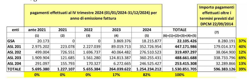 Lunedì, 8 Dicembre 2025 AbruzzoNON SOLO DEBITO, DA ROMA ALTRA BOCCIATURA AD ABRUZZO“PAGAMENTI DELLE ASL IN RITARDO NEL 39% CASI”I tempi di pagamento dei fornitori delle Asl Abruzzesi effettuati nel 2024 registrano ritardi nel 39% di casi, oltre i limiti previsti dalla legge. La situazione è particolarmente critica per la Asl di Pescara, al 69% dei pagamenti in ritardo, e nella Asl provinciale dell’Aquila, al 40%. Meglio fanno invece la Asl d Teramo, al 12%, e la Asl di Chieti, al 13%. I conti li ha fatti il Tavolo interministeriale della Sanità, come riportato nero su bianco nel verbale della riunione del 10 luglio scorso. Solo una delle bacchettate al centrodestra di Marco Marsilio di Fdi, a cominciare dal buco della sanità per il 2025 calcolato alla quota tendenziale di 126,8 milioni di euro, con “l’Abruzzo è l’unica Regione in piano di rientro in cui si registra una inversione di tendenza in senso peggiorativo dei risultati d’esercizio”, da ben tre anni, tanto da mettere “a rischio è la sostenibilità del Sistema sanitario regionale”. I Tavoli ricordano a proposito delle tempistiche “la procedura d’infrazione UE per il mancato rispetto dei tempi massimi di pagamento dei debiti commerciali da parte delle amministrazioni pubbliche” alla luce degli impegni assunti dall’Italia per l’attuazione del Pnrr, che prevede il conseguimento dell’obiettivo della puntualità entro il primo trimestre 2025. Si ricorda anche che “la quota dell’indennità di risultato dei direttori generali e dei direttori amministrativi è legata allo specifico obiettivo connesso al rispetto dei tempi di pagamento e alla riduzione del debito commerciale residuo”. Come già riferito da Abruzzoweb, altra criticità emersa è il ritardo, ma con monitoraggio al 30 giugno che non tiene conto dei successivi avanzamenti, nella realizzazione ovvero delle Case e degli Ospedali di comunità, finanziate dalla missione 6 del Piano nazionale di ripresa e resilienza. Interventi che dovranno essere conclusi e rendicontati entro giugno 2026. Si può ipotizzare che il ritardo dei pagamenti evidenziato dal Tavolo, sia collegato in qualche modo al deficit, visto che le Asl sono impegnate in un draconiano piano di rientro, che ad agosto, ma i risparmi erano già in atto dal 2024, ha visto la formalizzazione da parte della Giunta regionale di obiettivi da far tremare i polsi: ridurre a soli 24,4 milioni di euro il pesante deficit della sanità già a dicembre, e andare in attivo nel 2026 e 2027, con una riduzione dei costi di oltre 157 milioni nel triennio della spesa sanitaria, e poi aggiungendo le entrate fiscali aggiuntive dall’addizionale Irpef, e i tagli al bilancio ordinario, che ridurranno già da quest’anno i margini di manovra della finanziaria regionale. In tal senso, dilazionare i pagamenti è sintomo di sofferenza nel bilancio delle Asl, e anche, si può ipotizzare di una strategia per rinviare il passivo. Venendo dunque alla disamina del tavolo di monitoraggio: il Servizio sanitario regionale ha effettuato, durante l’anno solare 2024, pagamenti per 1.530,852 mln di euro, di cui l’82% relativi a fatture emesse durante il medesimo anno e il 17% relativi a fatture emesse nell’anno 2023. E di essi “il 39% dei pagamenti effettuati nell’anno 2024 è eseguito oltre i termini previsti”. Al primo trimestre 2025 tale percentuale è del 37%, dunque c’è un miglioramento, ma i Tavoli invitano comunque la Regione “ad attenzionare tale criticità”. Con riferimento alle movimentazioni in Piattaforma dei crediti commerciali (Pcc) il Tavolo rileva che nell’anno 2024 pagamenti per il 98% dell’importo dovuto. Risulta, inoltre, che per l’anno 2024 il “Tempo medio di pagamento ponderato” è pari a 66 giorni e il “tempo medio di ritardo ponderato” è pari a +5 giorni. |