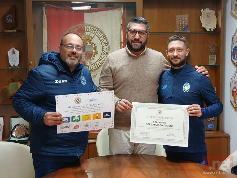 Mercoledì, 17 Dicembre 2025 SportSan Paolo Calcio Vasto-Atalanta e progetto 'DEAcademy', collaborazione a pieno regimeMattia Morelli, allenatore degli Esordienti Under 13 del club nerazzurro, è stato in visita a VastoTappa significativa nell’ambito dell’accordo di collaborazione tra la San Paolo Calcio Vasto e DEAcademy Italia, il programma ideato dall’Atalanta per le società dilettantistiche. Mattia Morelli, allenatore degli Esordienti Under 13 del club nerazzurro, è stato in visita a Vasto, a stretto contatto con il direttore generale della San Paolo Domenico Travaglini, immergendosi nella realtà di calcio giovanile tornata pienamente operativa nei mesi scorsi. Morelli e Travaglini sono stati prima ricevuti a palazzo di città dall’assessore allo Sport Carlo Della Penna che ha voluto approfondire i contenuti di un progetto ambizioso e di sostanza per la crescita del settore giovanile dello storico sodalizio vastese, consegnando un ‘attestato di merito‘ per la società nerazzurra che ha avviato in città un interessante percorso. A seguire il tecnico atalantino è stato presente sul rettangolo verde del Campo Ezio Pepe, partecipando ad una seduta con piccoli allievi e allenatori e collaboratori del team gialloverde, stimolando i calciatori ‘in erba’ e confrontandosi con chi li guida e li prepara. Il tutto nello spirito che alla base dell’affiliazione, che è quello “di migliorare le attività attraverso la condivisione di strumenti e metodi di formazione sia tecnica che educativa“. Tappa vastese foriera di buoni riscontri e partnership che prosegue, puntando anche a prossime e successive esperienze da poter vivere nel Centro sportivo di Zingonia, casa dell’Atalanta Bergamasca. |