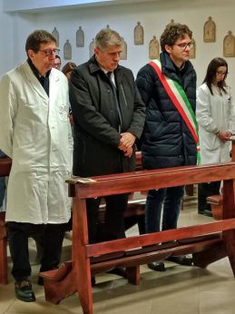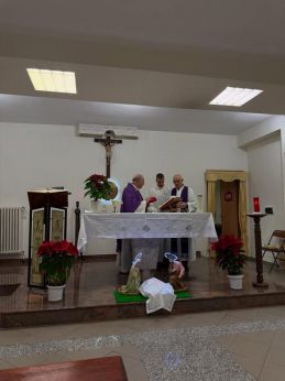Sabato, 20 Dicembre 2025 VastoMons. Bruno Forte a "San Pio" per la celebrazione del NataleUn momento di grande raccoglimento e di preghieraCelebrata nella mattinata oggi di sabato 20 dicembre la Santa Messa di Natale nella Cappella dell’Ospedale ‘San Pio da Pietrelcina’ di Vasto. A presiederla la celebrazione Eucaristica è stato Mons. Bruno Forte, Arcivescovo della Diocesi di Chieti-Vasto, che è stato accolto dal cappellano della struttura ospedaliera Don Gigi Giovannoni e dal direttore Sanitario dott. Di Vito. Un'occasione di raccoglimento e un messaggio di speranza, segnata dalla vicinanza del vescovo alla comunità ospedaliera. |