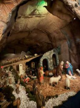 Si noti, alle spalle della Natività, un muro diroccato simbolo dell’uomo vecchio che deve “morire” lasciando lo spazio all’uomo secondo lo Spirito. Il credente accoglie la visita di Dio e si lascia guidare dalla luce della Grazia, quella luce che brilla sempre sul Bambino Gesù: la cometa e le stelle che fanno da cornice al nostro presepe vorrebbero essere un incantevole invito a camminare verso l’Emmanuele.
