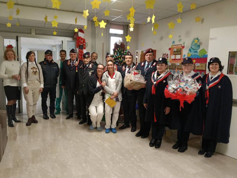 Sabato, 3 Gennaio 2026 ChietiLa locale Sezione dell'A.N.C. in visita alla Clinica PediatricaConsegnati per i bambini ricoverti vari materiali e prodotti di cancelleria utili alla didattica che quotidianamente viene garantitaUna rappresentanza dell'Associazione Nazionale Carabinieri - Sezione di Chieti questa mattina ,è stata ricevuta dal competente personale medico ed infermieristico della Clinica Pediatrica dell'Ospedale Clinicizzato di Chieti-diretta dal Prof.Francesco Chiarelli e dalle maestre che insegnano nel reparto. Il Presidente dell'ANC di Chieti,nel ringraziare il personale ospedaliero e le maestre per il grande e prezioso lavoro di assistenza che svolgono quotidianamente , ha consegnato per i bambini ricoverti, vari materiali e prodotti di cancelleria utili alla didattica che quotidianamente viene garantita oltre a giochi adatti allo svago e la serenità dei piccoli assistiti. Oltre al Presidente dell'ANC di Chieti Mario Colantonio hanno partecipato all'iniziativa i volontari: Giuseppe La Rovere,Vincenzo Savini,Enrico Torres,Marcello Tagliamonte.Rocco Petaccia, Ambra Porreca,Sabrina Di Ruscio,Concetta Mastrolillo, Maurilio Zulli , Mauro Massi con Anna Maria Mattioli entrambi anche componenti del Tribunale per i Diritti del Malato. |