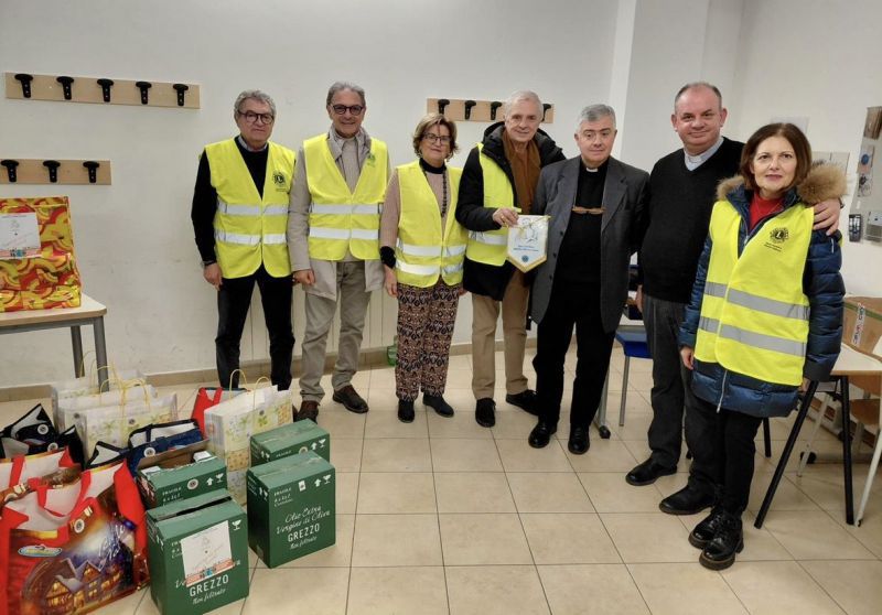 Giovedì, 8 Gennaio 2026 VastoPacchi di generi alimentari alle famiglie meno fortunate di VastoGesto di beneficenza da parte dei Lions Club Vasto Adriatica Vittoria ColonnaPacchi dono di genere alimentari per famiglie bisognose alla vigilia della festività dell’Epifania: questa la modalità scelta dai soci del Lions Club Vasto Adriatica Vittoria Colonna per dare concretezza al service multidistrettuale ‘Aggiungi un posto a tavola’ tradizionalmente previsto nel periodo prenatalizio e, inquest’anno sociale, inserito all’interno della settimana della lotta alla fame fortemente voluta dal presidente internazionale di Lions International Arvinder Pal Singh. Sabato pomeriggio una delegazione del Lions Club, guidata dal presidente Antonio Muratore, si è recata nella parrocchia di Santa Maria del Sabato Santo e ha rimesso nelle mani del parroco don Nicola Del Bianco e del vicario cooperatore don Giovanni Boezzi i pacchi approntati grazie a raccolte fondi ad hoc realizzate in precedenza. Sono 20 le famiglie meno fortunate, individuate dalla parrocchia vastese, che hanno beneficiato dell’attività di servizio del sodalizio vastese e che hanno passato l’Epifania avendo a disposizione generi di prima necessità, dall’olio di oliva alla pasta, dai legumi alle confetture e tanto altro. ‘I Lions sono da anni sensibili al tema della lotta alla fame – ha detto il presidente Antonio Muratore – e se grazie alla nostra Fondazione internazionale riusciamo a realizzare interventi importanti in tutto il mondo non dimentichiamo mai che la nostra azione si svolge anche a livello locale. Il nostro Club ha già partecipato alla Giornata della Colletta Alimentare ed oggi abbiamo cercato di donare un sorriso a qualche famiglia in occasione della Santa Epifania grazie alla collaborazione di don Nicola e don Giovanni, che ringraziamo per esserci stati accantocondividendo appieno lo spirito e le finalità dell’iniziativa.’ |