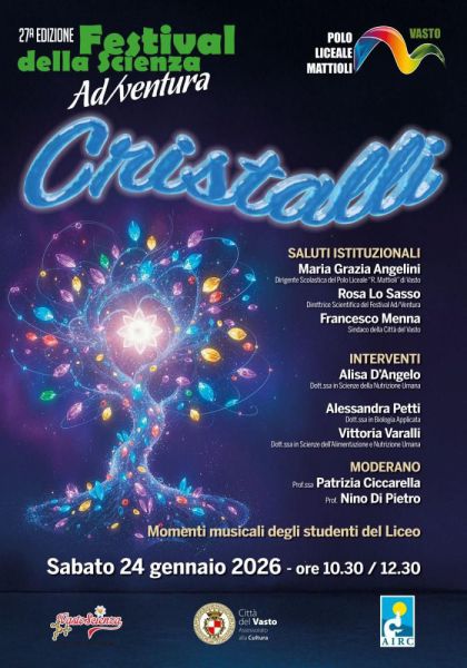 Da oggi sabato 24 gennaio 2026 torna a Vasto il Festival della Scienza Ad/ventura, organizzato dal Polo Liceale "Raffaele Mattioli", con un format rinnovato, caratterizzato da eventi distribuiti nel tempo.