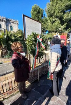 Martedì, 27 Gennaio 2026 VastoGiorno della Memoria, deposta una corona d’alloro al cippo di Vasto MarinaFioravante: «Le istituzioni sono presidio di memoria, legalità e umanità»Oggi, 27 gennaio 2026, in occasione del Giorno della Memoria, è stata deposta una corona d’alloro al cippo commemorativo del campo di internamento di Vasto Marina, in Piazza Rodi, per onorare le vittime della Shoah. Presenti il vicesindaco Licia Fioravante, gli assessori Anna Bosco, Gabriele Barisano, autorità civili e militari, rappresentanti dell’Anpi Vasto e delle associazioni combattentistiche e d’arma. «Oggi ricordiamo un evento storico drammatico che induce a fermarci come comunità. Questa non è una ricorrenza come le altre, bensì un appuntamento con la coscienza. Ricordare è un atto profondamente umano. L’orrore non nasce all’improvviso: cresce lentamente, quando si smette di riconoscere l’altro come persona, quando le parole diventano armi, quando l’indifferenza prende il posto della responsabilità. L’odio è una forza silenziosa e pericolosa: si insinua nelle menti, si nutre di paura e rabbia non governata. Per questo ognuno di noi è chiamato a rifiutare pensieri di odio, di sopraffazione, di vendetta, di rivalsa. Anche il silenzio e l’indifferenza possono diventare complici del male. Le istituzioni devono essere presidio di memoria, legalità e umanità. Ricordare oggi significa scegliere la democrazia contro la sopraffazione, il rispetto contro l’odio, l’umanità contro la violenza. Solo così la libertà può continuare a dominare le nostre vite e non essere mai più prigioniera, internata nei campi dell’odio», ha dichiarato nel proprio intervento il vicesindaco Licia Fioravante. «Desidero ringraziare tutti coloro che hanno preso parte a questo momento di riflessione. È fondamentale interrogarsi sul valore profondo di questa giornata, che non deve ridursi a una commemorazione rituale. La memoria delle atrocità inflitte a civili innocenti ci impone di riconoscere che simili violenze oggi assumono nuove forme e giustificazioni, spesso mascherate da motivazioni religiose. Esprimiamo orrore e dolore per quello che sta succedendo in molte parti del mondo. Siamo vicini alla popolazione civile di Gaza: chiediamo una soluzione duratura, giusta e condivisa per la Palestina. Memoria significa vigilanza e impegno quotidiano», ha aggiunto il presidente dell’Anpi Vasto, Domenico Cavacini. |