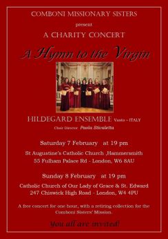 Martedì, 10 Febbraio 2026 VastoDa Vasto a Londra: due concerti dell'Hildegard Ensemble diretto da Paola StivalettaAlla St Augustine’s Catholic Church, Hammersmith e alla Catholic Church of Our Lady of Grace & St. Edward, ChiswickGrande apprezzamento per l’Hildegard Ensemble diretto da Paola Stivaletta in ben due concerti tenuti a Londra il 7 e 8 febbraio. L’Ensemble vastese è stato protagonista di due bellissime esecuzioni - sabato 7 febbraio alla St Augustine’s Catholic Church, Hammersmith e domenica 8 alla Catholic Church of Our Lady of Grace & St. Edward, Chiswick. I due eventi sono stati realizzati grazie al grande impegno e dedizione delle Comboni Missionary Sisters della sede di Londra e del Parish Priest Canon Michael Dunne della Catholic Church of Our Lady of Grace & St. Edward, che anche quest’anno, come già nel 2024, hanno voluto ospitare il gruppo vocale organizzando un concerto di musica sacra antica. I concerti sono stati finalizzati anche per la raccolta fondi per la Comboni Sisters’ Mission. Il programma proposto, comprendente brani di autori di diversi periodi storici (Laudario di Cortona, Hildegard von Bingen, Montpellier Codex, Cancionero de Uppsala, Thomas Tallis, ecc.), è stato accolto con grande interesse e attenzione dal numeroso pubblico londinese intervenuto che ha manifestato il proprio apprezzamento con lunghi ed intensi applausi. I parroci delle due parrocchie hanno ringraziato a lungo il direttore Paola Stivaletta e manifestato vivo apprezzamento per quanto espresso durante i concerti sia per la qualità delle voci che per il repertorio e la prassi esecutiva, nel contempo è stato rinnovato l’invito all’Ensemble per future esibizioni in terra inglese. L’Hildegard Ensemble, diretto e fondato da Paola Stivaletta, è una formazione a voci pari femminili (Paola Stivaletta, Sara Cicioni, Martina Di Bussolo, Clara Lizzi, Serena Menicucci, Elisa Zinni) ed è parte della sezione femminile del Coro Polifonico Stella Maris di Vasto. Il gruppo porta il nome di Hildegard von Bingen (1098-1179, mistica cristiana, badessa benedettina ed erudita, esperta in filosofia, composizione musicale, biologia, letteratura medievale, cosmologia, medicina, biologia, teologia e storia naturale). |