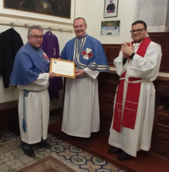 Lunedì, 2 Marzo 2026 VastoConfraternita della Sacra Spina e del Gonfalone, riconoscimento a Pino CavuotiIl Priore emerito è stato insignito di un attestato di benemerenza quale segno di gratitudine per l’impegno, la dedizione e il servizio svoltoMomento particolarmente significativo e carico di emozione per la Confraternita della Sacra Spina e del Gonfalone di Vasto: il Priore emerito, Pino Cavuoti, è stato insignito di un attestato di benemerenza quale segno di gratitudine per l’impegno, la dedizione e il servizio svolto negli anni alla guida della Confraternita. Un riconoscimento - rimarca il Priore Massimo Stivaletta - che testimonia l’affetto e la riconoscenza di tutti i confratelli per il prezioso contributo offerto alla crescita spirituale e organizzativa del sodalizio. La serata si è così conclusa in un clima di fraternità rafforzando il senso di appartenenza e rinnovando lo spirito che anima la Confraternita della Sacra Spina e Gonfalone nel suo cammino di fede e testimonianza. |
