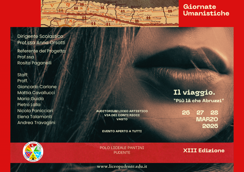 Venerdì, 20 Marzo 2026 VastoAll'insegna del viaggio le 'Giornate Umanistiche' del Polo liceale 'Pàntini Pudente' di VastoLa tematica che caratterizzerà questa edizione sarà “Il Viaggio”All’insegna del viaggio, tornano le Giornate Umanistiche del Polo Liceale ‘Pàntini Pudente’, alla loro XIII edizione. Il 26, 27 e 28 marzo, presso l’Auditorium del Liceo Artistico, si terranno gli incontri con tanti ospiti di rilievo; l’evento è aperto a tutti. La tematica che caratterizzerà questa edizione sarà “Il Viaggio” e, come sottotitolo “Più là che Abruzzi”, G. Boccaccio (Decameron, giornata VIII, novella III). Partendo dal tema del viaggio e da una frase pronunciata da Calandrino nel Decameron di Boccaccio, il progetto ambisce a condurre tutti ad approfondire e a cogliere, nei suoi diversificati aspetti, sia la tematica della conoscenza che matura attraverso il viaggio, sia il viaggio come movimento, dinamica, che supera i confini del proprio territorio. “Il viaggio rappresenta da sempre nella Letteratura, nell’Arte, nella Filosofia, una trasformazione, una crescita personale e la ricerca di sé. Simboleggia un processo di distacco dalla routine e dai propri limiti, siano essi temporali o spaziali, per esplorare l'ignoto e mettersi alla prova, affrontando nuove sfide che portino alla scoperta e a talora al cambiamento della propria identità. Il viaggio rappresenta anche la sperimentazione e il superamento delle barriere dei pregiudizi e dell’ignoto, che sono alla base della conoscenza. Il viaggio è una metafora efficace anche della metacognizione. Come il viaggio fisico spinge a esplorare nuovi luoghi, la metacognizione spinge a riflettere sul proprio modo di imparare, di comprendere, di leggere ciò che ci circonda e pianificare nuove strategie per scoprire nuove mete”. Si legge in una nota di presentazione del progetto della professoressa Rosita Paganelli, ancora una volta ideatrice e referente dello stesso. Il dirigente scolastico, professoressa Anna Orsatti, ha sempre sostenuto e fortemente creduto nel Progetto che da anni caratterizza e implementa la promozione culturale del Polo Liceale Pàntini Pudente, seguendo accuratamente e nel dettaglio le varie fasi, insieme ai docenti che hanno collaborato nel cercare di tradurre in un evento, la vitalità di una scuola che interagisce con il territorio. Lo staff di docenti che si è adoperato nella realizzazione dell'evento, coordinato dalla prof.ssa Paganelli: prof.ssa Maria Guida, prof. Pietro Lalla, prof. Nicola Panicciari, prof. Andrea Travaglini, prof.ssa Elena Talamonti, prof. Mattia Cavallucci, prof. Giancarlo Carlone. Gli ospiti, esperti, autori, antropologi, astrofisici, musicisti, che costituiranno il nutrito parterre delle Giornate Umanistiche, disserteranno sul viaggio e sulla cultura del viaggio, partendo, è il caso di dirlo, da Camillo Chiarieri, Adriana Gandolfi, Marco Ballarè, Clementina Sasso, fino ad arrivare a Piero Dorfles e Makardia. Un appuntamento imperdibile, per gli studenti e per la cittadinanza, per quanti vorranno, con curiosità, intraprendere un breve viaggio nella conoscenza.