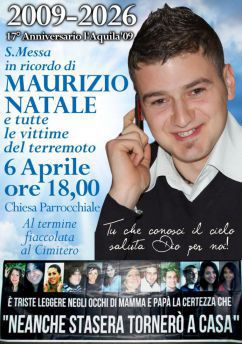 Lunedì, 6 Aprile 2026 VasteseOggi Monteodorisio ricorderà Maurizio NataleIl giovane studente perse la vita nel terremoto de L'AquilaIn occasione del 17esimo anniversario del devastante sisma de L’Aquila, oggi, lunedì 6 aprile alle ore 18 presso la chiesa parrocchiale di Monteodorisio, sarà celebrata una Santa Messa in ricordo di Maurizio Natale e di tutte le 309 vittime del terremoto. |