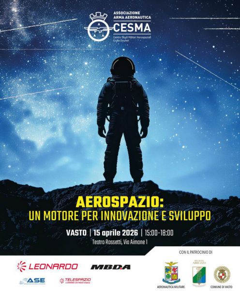 Sabato, 11 Aprile 2026 VastoAerospazio in Abruzzo, se ne parlerà a Vasto il 15 ed il 16 aprileAl Teatro Rossetti per stakeholders e all’Auditorium Polo Liceale MattioliPrimo evento del genere a Vasto su aerospazio. Il doppio appuntamento mercoledì 15 aprile (ore 14:30-18:00) al Teatro Rossetti per stakeholders e giovedì 16 aprile (ore 09:00-12:00) all’Auditorium Polo Liceale Mattioli. Sarà rivolto a studenti Mattioli, Palizzi-Mattei e Pàntini-Pudente di Vasto, con esperti di settore provenienti, anche da altre regioni d’Italia, da istituzioni, industria, università e centri ricerca quali CeSMA, AICT, Università Roma Tor Vergata, Assessorato Attività Produttive Regione Abruzzo, Distretto Aerospaziale d’Abruzzo, Agenzia Spaziale Italiana, Università G. D’Annunzio Chieti-Pescara, Next2U, Leonardo, Fondazione Gran Sasso Tech, Telespazio, Università degli Studi dell’Aquila, 32° Stormo, ELT Hub. Si parlerà ad ampio raggio del comparto aerospazio in veste duale (civile e militare) con focus sul territorio d’Abruzzo, approfondendo stato dell’arte, sfide e opportunità industriali e occupazionali nei prossimi decenni, con riferimento al contesto nazionale, europeo e internazionale. Ambiti in crescita ed evoluzione quali trasporto aereo, mezzi, apparati e applicazioni aerospaziali, esigenze di difesa e sicurezza, tecnologie abilitanti emergenti e dirompenti, aprono straordinarie prospettive d’innovazione, economiche, industriali e occupazionali. Esempi come il Cluster Tecnologico Nazionale Aerospazio (CTNA) e i distretti aerospaziali regionali come il Distretto Aerospaziale d’Abruzzo (DAAB), rappresentano per il Paese, a beneficio delle nuove e future generazioni, la proficua cooperazione tra istituzioni, industria, Aeronautica, università e centri ricerca. Le conferenze sono state organizzate dal CeSMA Centro Studi Militari Aerospaziali insieme all’Associazione Arma Aeronautica Aviatori d’Italia Sezione di Vasto con il patrocinio del Comune di Vasto, della Regione Abruzzo e dell’Aeronautica. La conferenza del 16 al Polo Liceale Mattioli è dedicata esclusivamente agli studenti. La conferenza del 15 a Teatro Rossetti prevede ingressi tramite inviti specifici per gli addetti ai lavori e in caso di posti disponibili residuali chi fosse interessato puo’ registrarsi sino ad esaurimento posti scrivendo ad Associazione Arma Aeronautica Aviatori d’Italia Sezione di Vasto all’indirizzo: vasto.147@assoaeronautica.it |