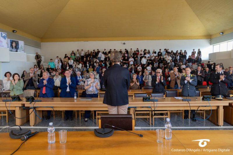 È stata un’esperienza di grande valore culturale e formativo la lezione-evento che l’aula magna “Carlo Anelli” del Palazzo di Giustizia di Vasto ha ospitato nella mattinata di ieri, venerdì 10 aprile 2026, attraverso l’avvincente opera teatrale “Amuninni. Storia d’amore e di mafia” curata e interpretata da Massimo Caponnetto, figlio di Antonino, il magistrato che tra il 1983 e il 1988 guidò il pool antimafia ideato da Rocco Chinnici nel 1980. Dopo l’assassinio di Chinnici, dette forma giuridica al pool e accanto a sé chiamò Giovanni Falcone, Paolo Borsellino, Giuseppe Di Lello e Leonardo Guarnotta. La loro attività portò all’arresto di più di 400 criminali legati a Cosa nostra, culminando nel maxiprocesso di Palermo, celebrato a partire dal 10 febbraio 1986.