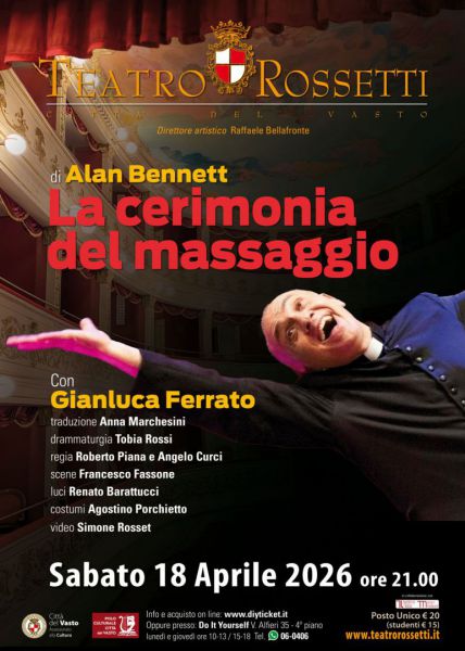 Sabato 18 aprile 2026, alle ore 21:00, al Teatro Rossetti di Vasto andrà in scena “La cerimonia del massaggio”