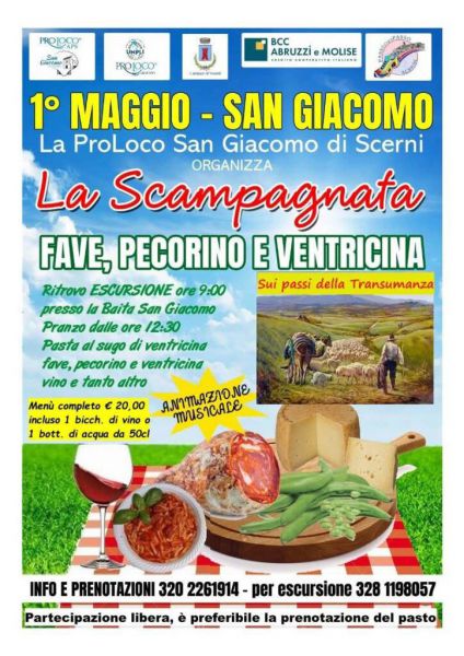 Lunedì, 27 Aprile 2026 VasteseA San Giacomo di Scerni torna “La Scampagnata”Tradizione, territorio e sapori del Primo MaggioLa Pro Loco San Giacomo di Scerni presenta, in occasione della giornata del 1° Maggio, l’evento “La Scampagnata – Fave, pecorino e ventricina”, una giornata dedicata alla convivialità, alla valorizzazione delle tradizioni locali e alla riscoperta del territorio. L’iniziativa, organizzata a San Giacomo di Scerni, vuole offrire alla comunità e ai visitatori un momento di incontro semplice e autentico, legato ai sapori tipici della tradizione abruzzese e alla bellezza del paesaggio rurale. Evento realizzato con il patrocinio e supporto del Comune di Scerni. Il programma prevede il ritrovo per l’escursione alle ore 9:00 presso la Baita San Giacomo, con un percorso ispirato al tema “Sui passi della Transumanza”, per riscoprire uno degli elementi più significativi della storia e dell’identità del territorio. A seguire, dalle ore 12:30, è previsto il pranzo conviviale con un menù dedicato ai prodotti della tradizione: pasta al sugo di ventricina, fave, pecorino, ventricina, vino e tanto altro. Mercoledì 29 è prevista la presentazione presso la Sala consiliare del Comune alla presenza degli amministratori. |